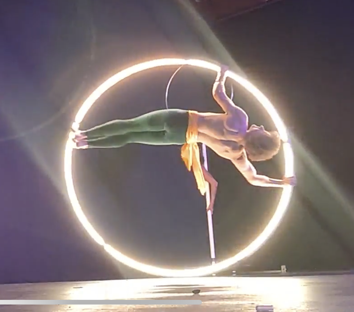 Luke Dulac started teaching himself the Cyr Wheel at the start of the pandemic and practiced it in his living room. He began posting his progress on social media and eventually people reached out to him to perform.